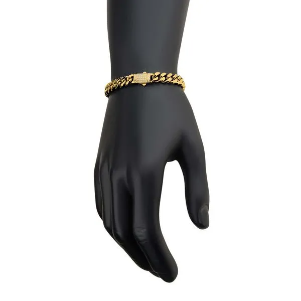 8mm 18Kt Gold IP Miami Cuban Chain Bracelet with CNC Precision Set CZ Double Tab Box Clasp
