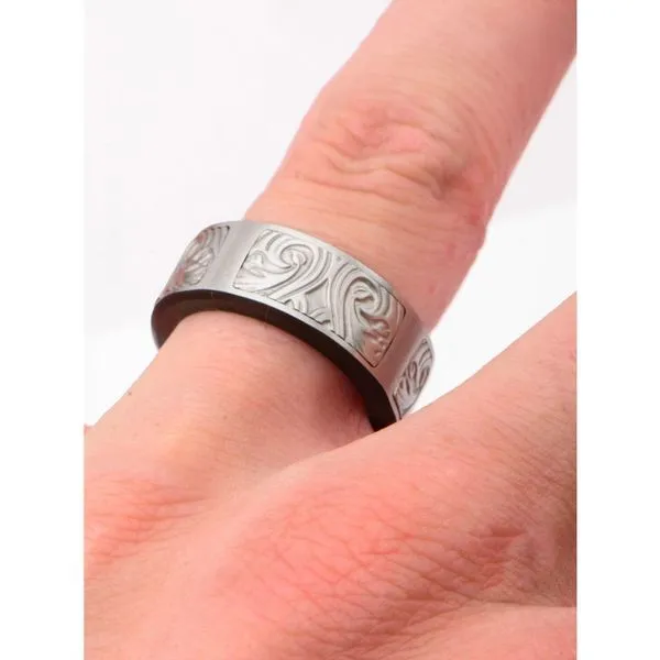Black IP Steel Scroll Pattern Ring Spath Jewelers Bartow, FL